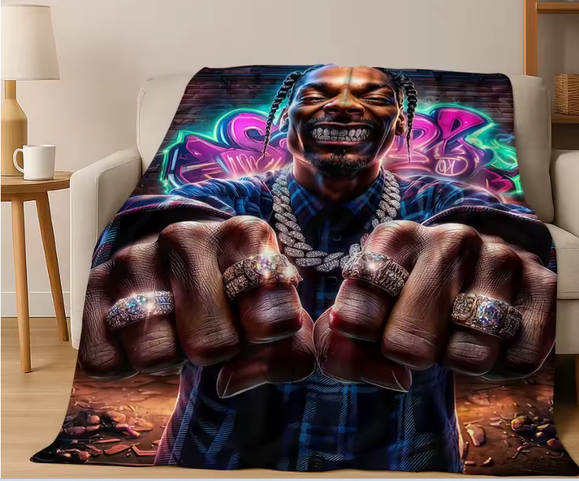 Bring a bold hip-hop vibe to your space with this cosy flannel throw blanket featuring a vibrant cartoon rapper-style design. Ideal as a sofa throw, bedroom blanket, or a statement piece for your setup.